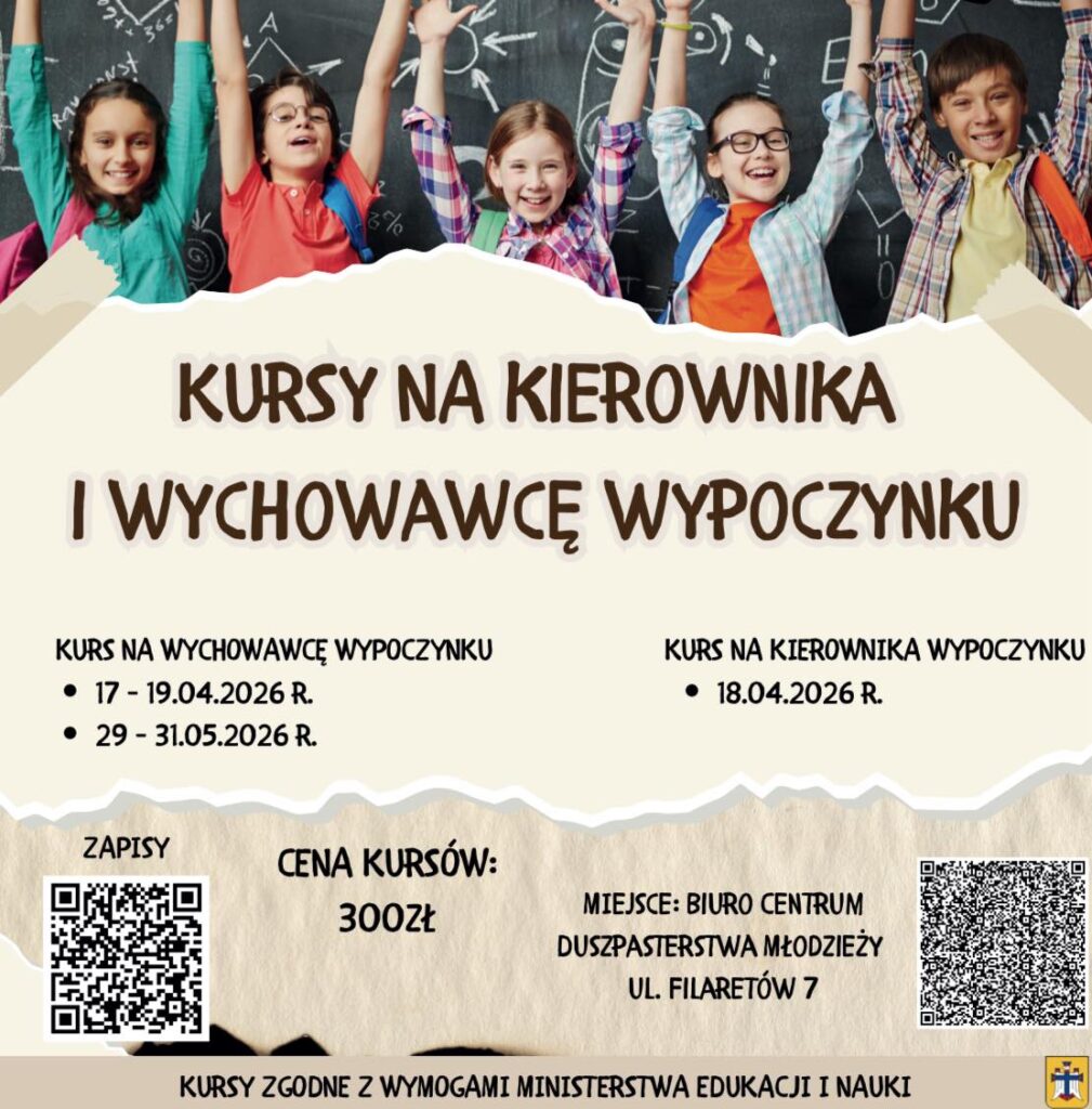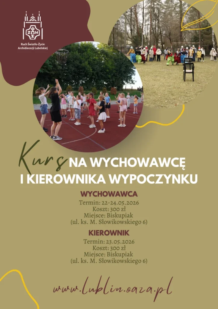 Chcesz zostać wychowawcą lub kierownikiem wypoczynku podczas wakacyjnych wyjazdów! Skorzystaj z oferty szkoleń w tym zakresie organizowanych przez Katolickie Stowarzyszenie Młodzieży Archidiecezji Lubelskiej oraz Ruch Światło-Życie Archidiecezji Lubelskiej.